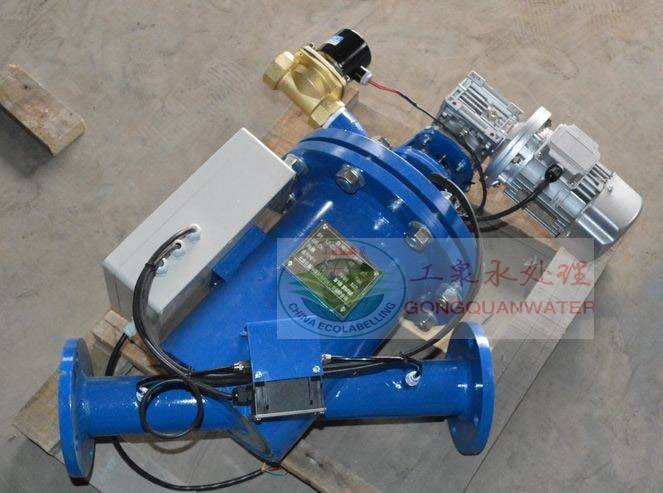 全自動(dòng)自清洗過濾器是一種全自動(dòng)在線自清洗水過濾器,過濾器網(wǎng)內(nèi)安裝一套不銹鋼刷,或吮吸掃描器,或絲刷+吮吸組合,以上裝置由減速電機(jī)帶動(dòng)旋轉(zhuǎn),在過濾器端蓋上或底部安裝一個(gè)電動(dòng)排污閥。工作時(shí),濁水由進(jìn)水口進(jìn)入,通過不銹鋼楔形網(wǎng)過濾污物。凈水由出水口流出,當(dāng)污物聚集過多時(shí),造成過濾不暢,腔體壓力上升,當(dāng)進(jìn)出水的壓力差值達(dá)到一定值時(shí)(預(yù)先設(shè)定),壓差開關(guān)發(fā)出信號(hào)給控制器,控制器啟動(dòng)減速機(jī)電機(jī),帶動(dòng)內(nèi)部裝置旋轉(zhuǎn)刷掉或吮吸污物雜質(zhì)。同時(shí)打開電動(dòng)排污閥,排出污物,清洗時(shí)間約為1分鐘,自清洗期間無需斷流,排污壓力損失不超過0.05MPa,流量損失不超過1%。
