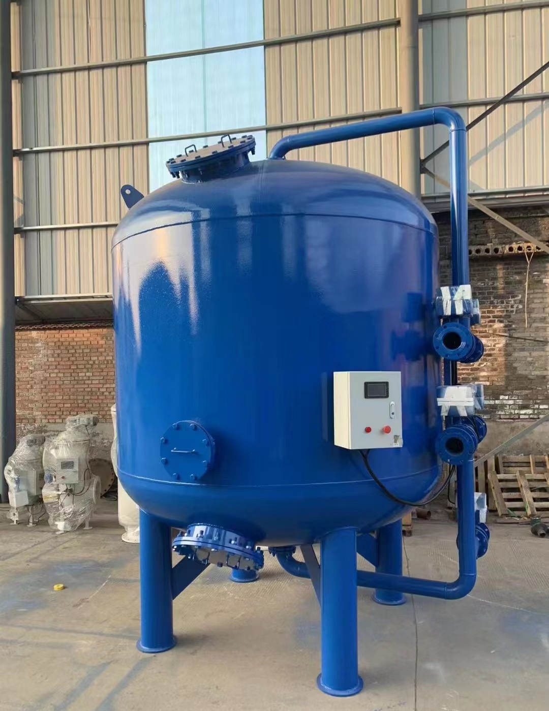 石英砂過濾器分為手動控制反洗與全自動控制反洗,手動反洗控制是利用手動蝶閥切換水的方向進行反洗操作,而全自動石英砂過砂濾器反洗操作是經過PLC控制電動蝶閥進行對水流的方向切換進行反洗操作。